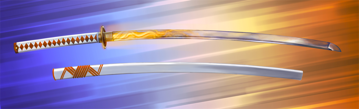 Posturo is a katana with a white sheath and handle accented with orange markings, it has a golden hand guard, and a transparent blade. The longer the battle or the more intensely that the wielder is using Posture, a flame begins to grow from the hilt within the the transparent blade. It is said that once the blade is completely full of flame that there isn't anything that it isn't able to cut through.